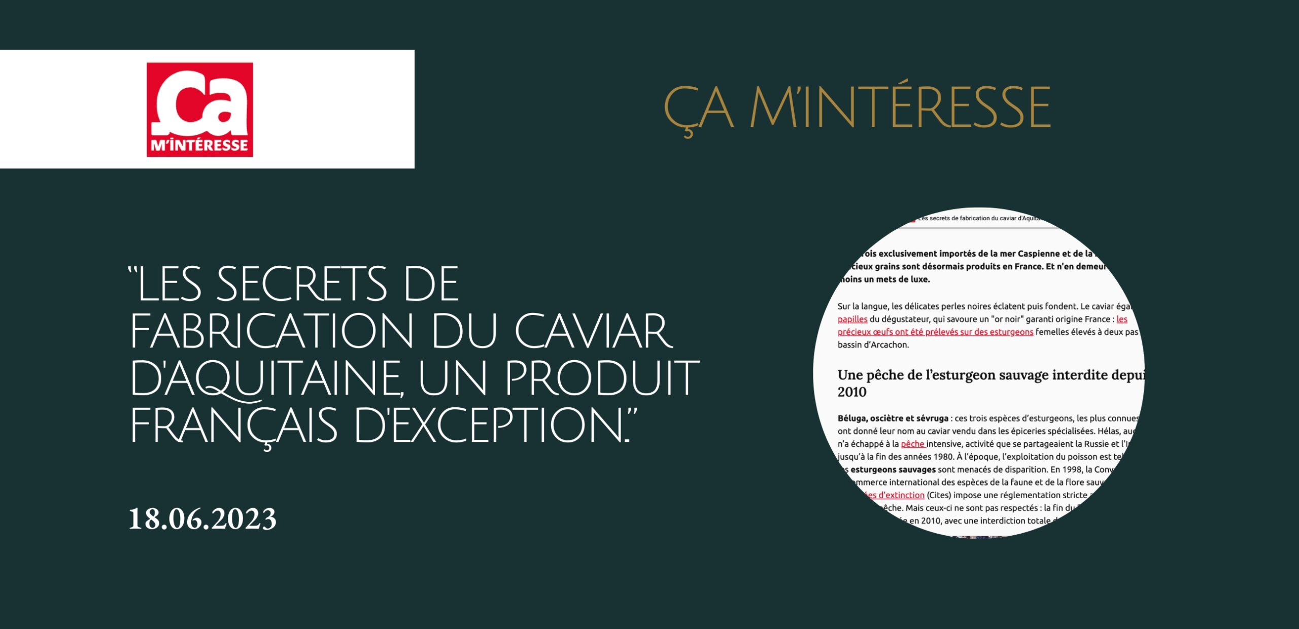 Sur la langue, les délicates perles noires éclatent puis fondent. Le caviar égaie les papilles du dégustateur, qui savoure un « or noir » garanti origine France : les précieux oeufs ont été prélevés sur des esturgeons femelles élevés à deux pas du bassin d’Arcachon. ».