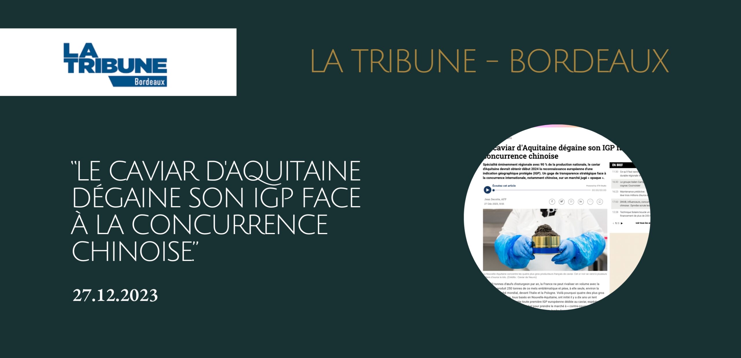 "Le Caviar d'Aquitaine dégaine son IGP face à la concurrence chinoise."